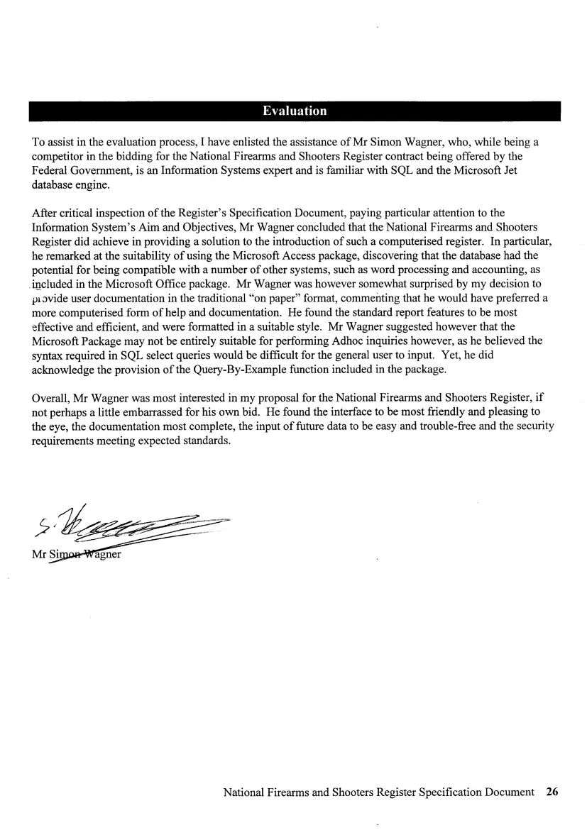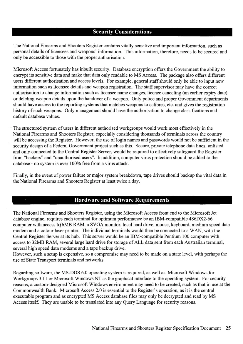 You are to set up a complete Information System to provide for national registration of firearms and licencing of shooters. The final system should be fully documented in a Specification Document.